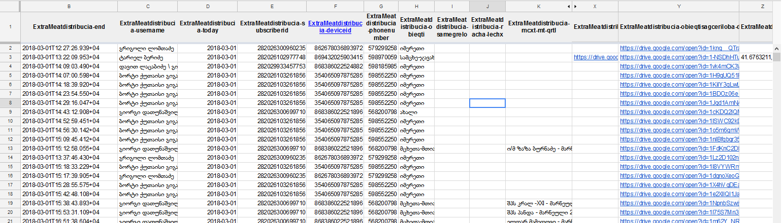 The data in google spreadsheet is just like a database, basically its kind of database, this is how raw data looks in the spreadsheet: