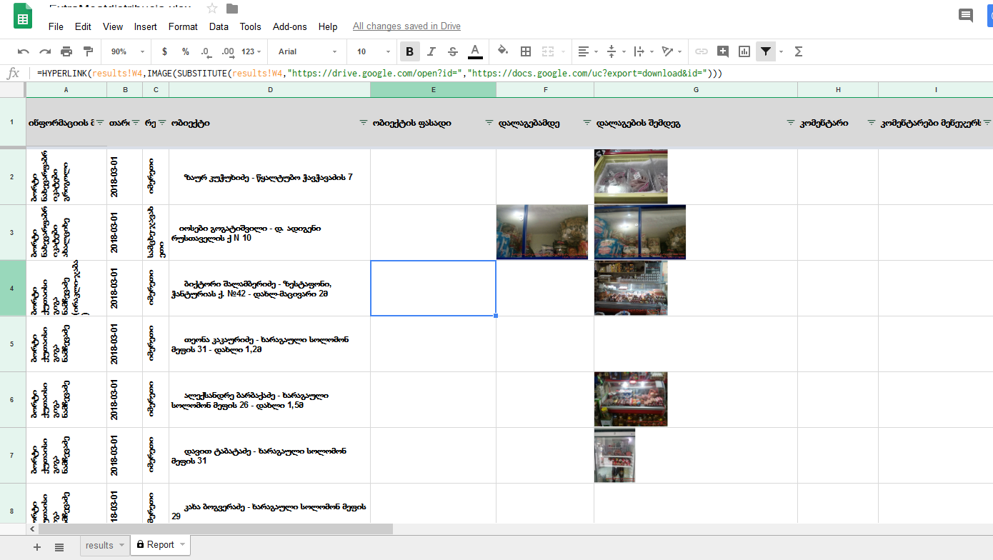 there is also one problem, images here are delivered as a link to the google drive so, if we want to see them you have to click on the link and open them in the separate window, this is of course really bad user experience, and goal is to show them in the cell as a thumbnails.